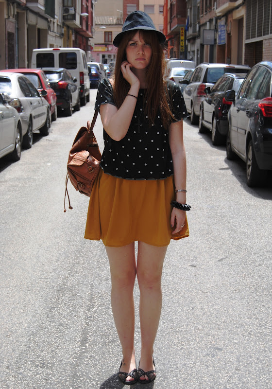 Me gusta el look, pero el sombrero lo veo un poco de invierno, te quedaría mejor uno más claro.